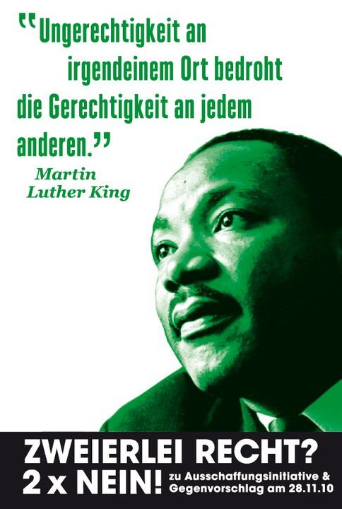 Und dann noch diese Plakate: Es stimmt. Wer heute bereit ist, dafür zu stimmen, aus AusländerInnen ungerecht (d.h. anders als SchweizerInnen) behandelt werden, muss das nächste Mal damit rechnen, selber vor dem Gesetz benachteiligt zu werden.