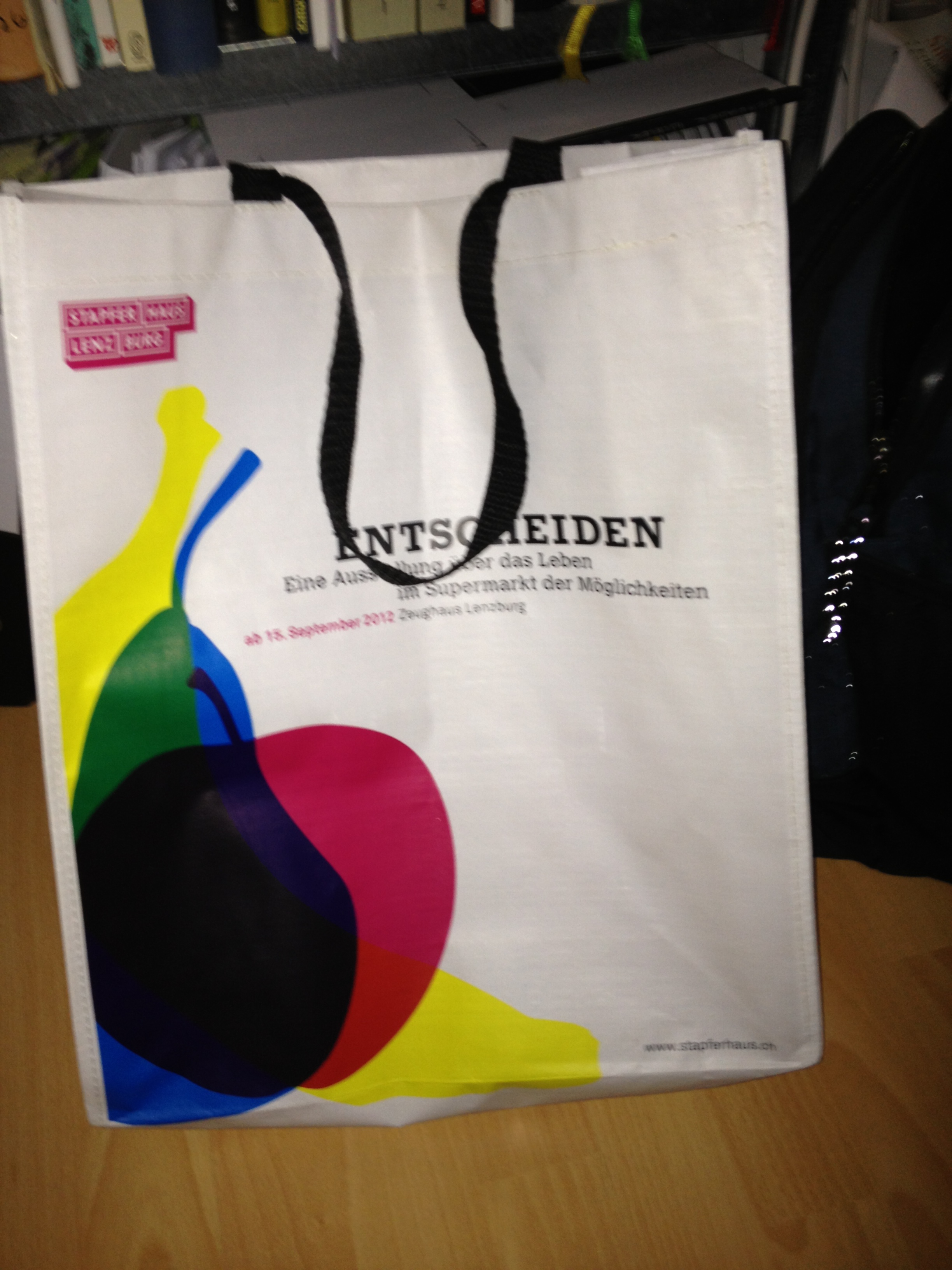 Eine Möglichkeit, wie man Lehrers Ratschlag folgen könnte, ist ein Besuch im Stapferhaus in Lenzburg. Dort ist bis Mitte 2013 die Ausstellung »Entscheiden« zu sehen. Inszeniert wird diese Ausstellung als ein Supermarkt, in dem man über eine Tonbildschau eintritt. Danach erfolgt im Erdgeschoss ein Rundgang durch thematisch geordnete Entscheidungsfelder: Liebe, Karriere, Politik, Glück oder Wille, neue Entscheidungsmöglichkeiten, Entscheidungsträger.