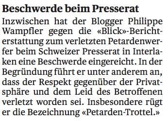 - Auch in der gedruckten Ausgabe des Tages-Anzeiger findet sich ein Hinweis auf meine Beschwerde (ganze Seite als pdf):
