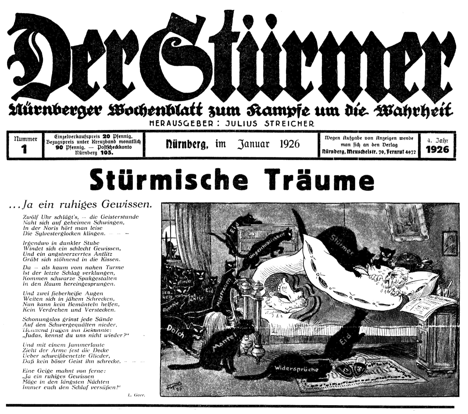 Die Weltwoche titelt »Die Roma kommen« und suggeriert mit dem bestimmten Artikel, dass vom Volk der Roma eine Gefahr ausgehe. Der Stürmer schreibt (10/1924, S. 3):